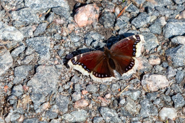 After driving a while, we found very warm and peaceful place, where we decided to stay. There were quite many butterflies flying around. Suddenly I saw mourning cloak on the birch and was able to get some photos of that beautiful butterfly.