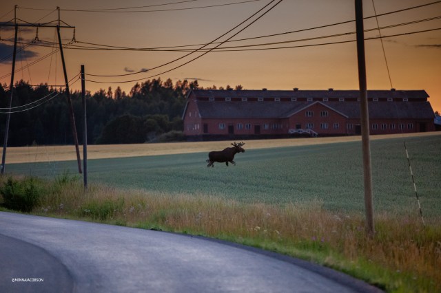 Really nice atmosphere pictures of moose in a living agricultural landscape. In addition, steady hands despite the late hour. Well done!